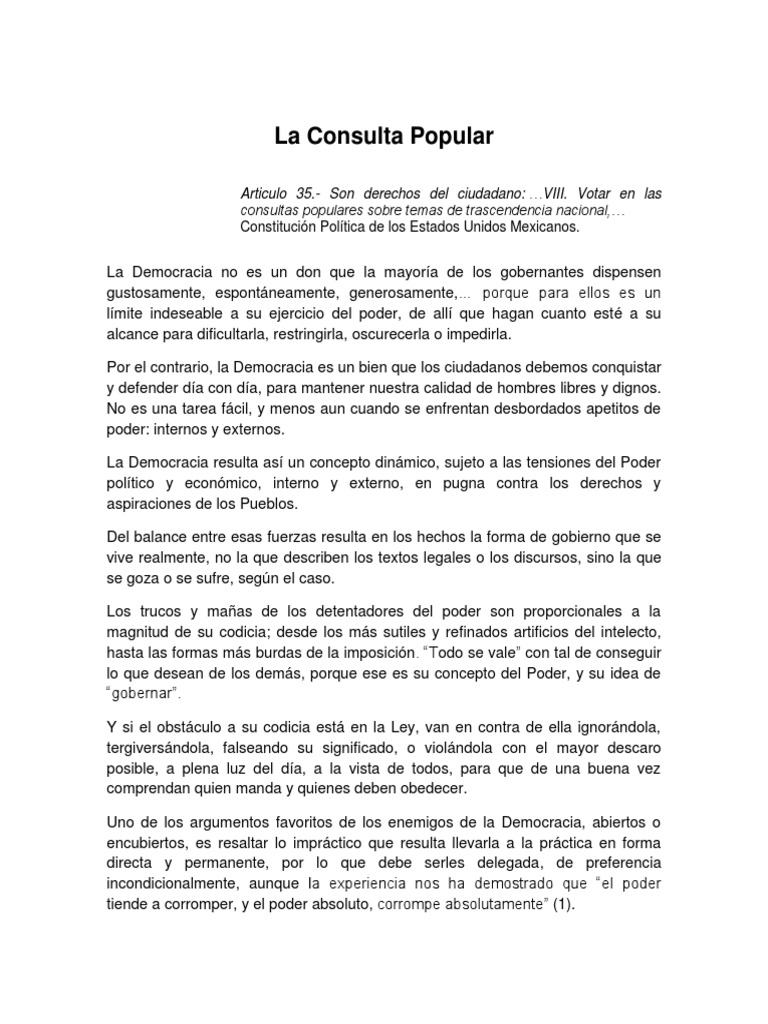 Consulta Popular from webservice.emaze.com Especialidad lingüística que estudia la etimología de las palabras. Si una iniciativa popular reúne el mínimo de firmas, la propuesta se somete a referéndum. Que es conocido, importante o reputado es una persona muy significada del mundo de la moda. Política consulta electoral que recurre directamente a todos los habitantes de un territorio para obtener la ratificación de la gestión de un gobernante o para decidir sobre alguna cuestión de importancia proponen que se haga un plebiscito sobre el aborto. Situación o acontecimiento grotescos o ridículos y a veces tragicómicos. Significación o sentido de las. La especie sechium edule es una trepadora perenne, monoica y vivípara de tallos aristados y lisos, hasta de 15 m de largo, muy ramificados. Pieza dramática en un acto, de carácter popular y burlesco, que se representaba como intermedio o al final de una función.